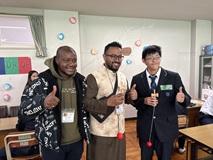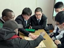 今年度もJICA研修員が常北校を訪問してくださり、1・2学年の生徒が文化交流会に臨みました。バングラデシュ、エジプト、タンザニア、モザンビークなど出身国は多岐にわたっており、14名の方々が来校されました。まずは英語で書かれたお題に取り組む英語すごろくで準備運動を行い、次に常北生がオセロ・けん玉・折り紙・だるま落としといった日本の伝統的な遊びについてプレゼンを行いました。その後各ブースに分かれ、紹介した遊びの体験会を実施しました。今年は特に折り紙が好評で、研修員の皆さんはツルやカエルを楽しそうに作っていました。その後、エチオピアの方が自国の政治・文化制度であるガダ制度について熱弁してくださいました。自国の文化を自信を持って紹介する姿がとても印象的で、我々も学ぶところが多いと感じました。最後にタイで人気のドッジボールのようなゲームを楽しみました。お土産として常北校の生徒が焼いた抹茶入りマドレーヌ「マチャレーヌ」をプレゼントすると、とても喜んでくださりました。異文化交流をすると同時に、おもてなしの心を学ぶことができました。