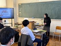 (株)コナカ様のご協力を得て、進学・就職をひかえた3学年生徒を対象とするスーツ着こなしセミナーを実施しました。モデルとなった4名の生徒は各々素敵なスーツ姿で登場し、スーツに慣れない初々しさもありつつ、立派な様子でした。セミナーは明るい雰囲気で進んでいきましたが、生徒にとって大切な内容であるため、生徒は真剣に話を聞いていました。