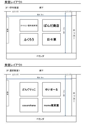 内容 模擬店(飲食、雑貨、小物、野菜、花、カフェ、サービス(マッサージ)他)