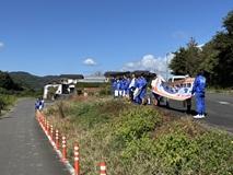 台風の接近により開催に暗雲が立ちこめていた日もありましたが、常北校生を応援するように天気にも恵まれ、無事今年もツール・ド・常北を開催することができました。常北校の名物行事であるツール・ド・常北では、生徒が城里町・常陸大宮市内の自然豊かな35kmのコースを1日かけて自転車で駆け巡ります。コース内には厳しい坂が数カ所ありますが、生徒はお互いに励まし合いながら頑張っていました。自転車で参加することができない生徒は、旬を迎えた城里町のさつまいもを使い、美味しい焼き芋をつくってくれました。今年度も桂中学校の生徒が応援に駆けつけてくれたため、たくさんのパワーをいただくことができました。また、今回は自衛隊の方々が25式起動広報車という可愛らしい車と共に応援に来てくれたため、とても盛り上がりました。はじめは消極的だった生徒も、完走後に楽しかったと言っており、高校生活のよい思い出となりました。ツール・ド・常北を開催するにあたって協力してくださった皆さま、本当にありがとうございました。