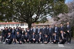 春休みが明け、新年度がスタートしました。始業式の校長先生からの言葉では、改めて「凡事徹底」の大切さが述べられ、当たり前のことの積み重ねによって、それぞれの目標を達成してほしいと生徒に伝えました。また、全校生徒が揃ったため、恵まれた天気の下で、桜に囲まれた素敵な集合写真を撮ることができました。